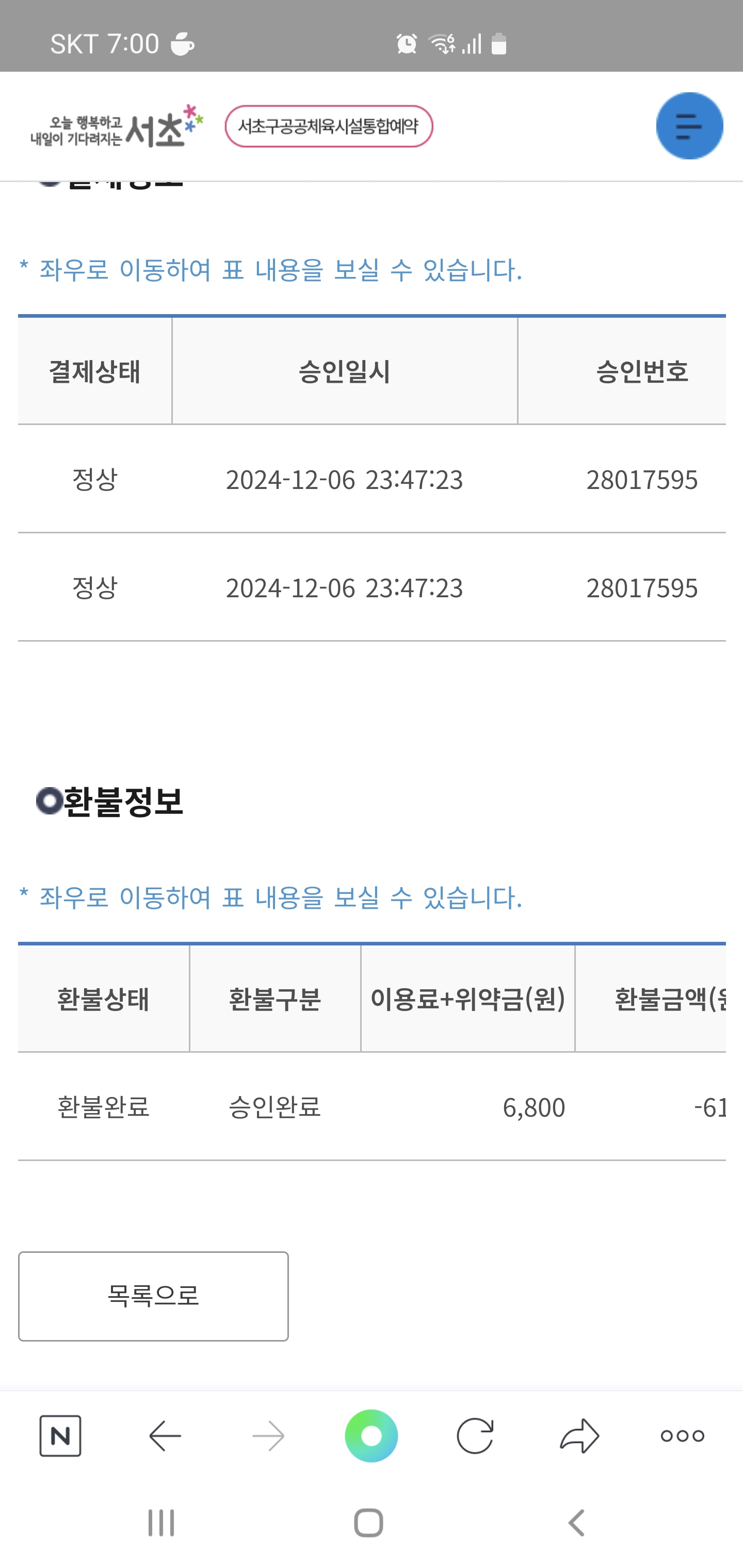 반포종합운동장 환불관련 문의 드립니다 작성자 이효원 작성일 2024년 12월 14일 19시 3분 24초 조회 406 Screenshot_20241214_190012_NAVER.jpg [ Size : 364.2KB , Down : 128 ] 미리보기 다운로드 안녕하세요 반포종합운동장 축구장을 대관하였다가 환불했는데 계좌에 돈이 들어오지 않아 문의 드립니다. 12월 12일 13:00~15:00 에 이효원으로 대관신청을 하였습니다 목록보기